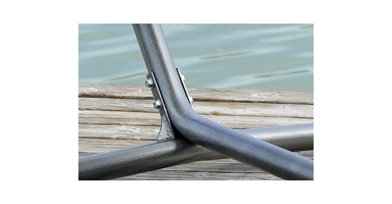 El soporte de hamacas Sumo RS está fabricado con sólidos tubos de acero y es regulable en longitud, entre 270 y 335 cm.