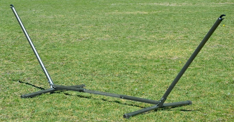 El soporte de hamacas Sumo RS está fabricado con sólidos tubos de acero y es regulable en longitud, entre 270 y 335 cm.