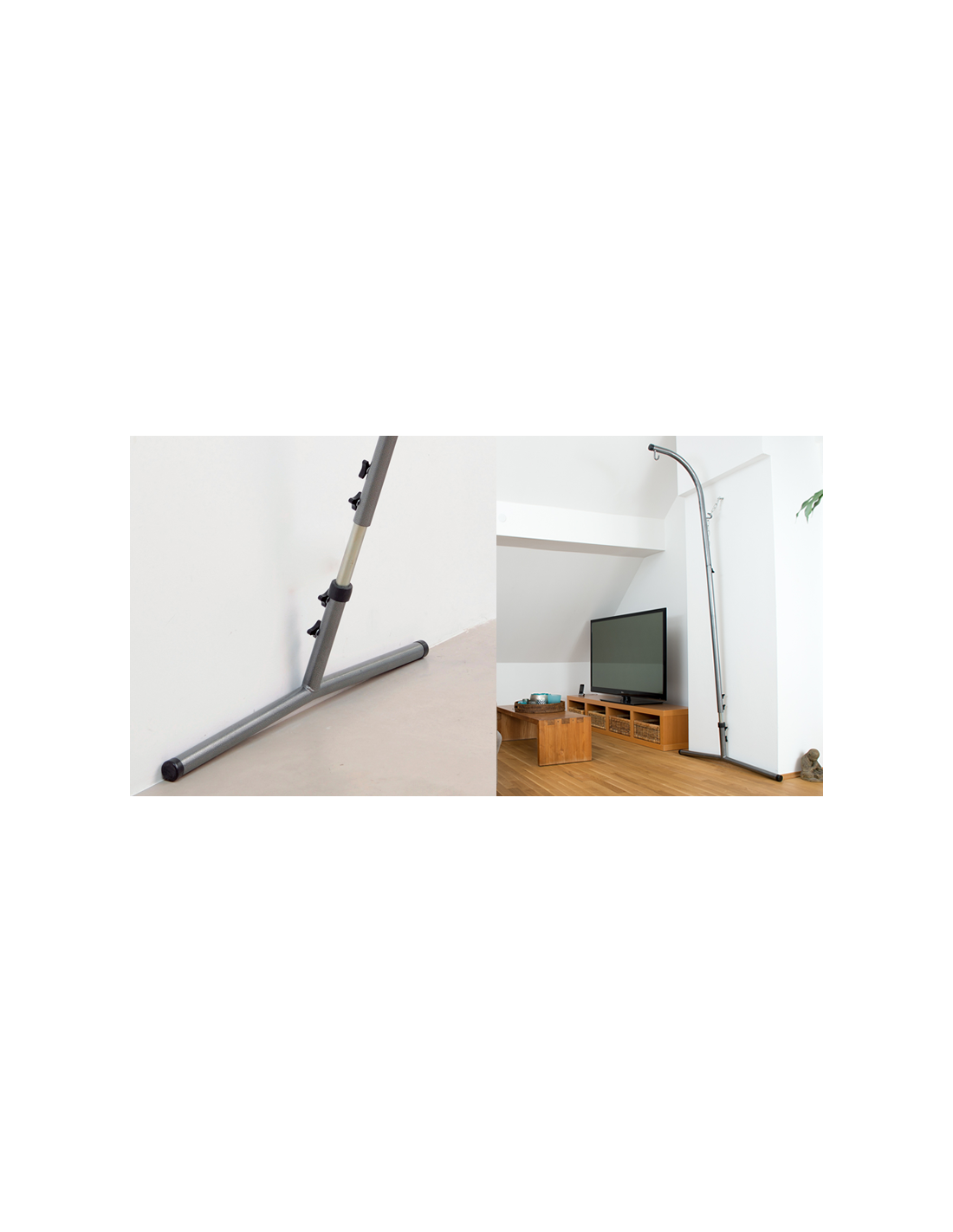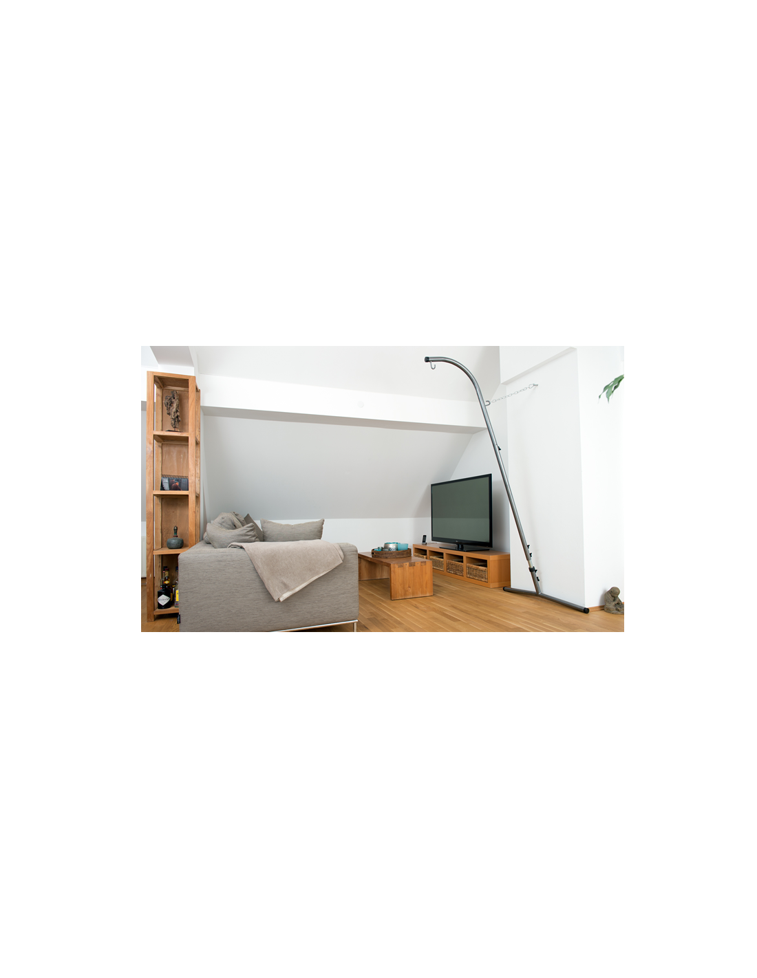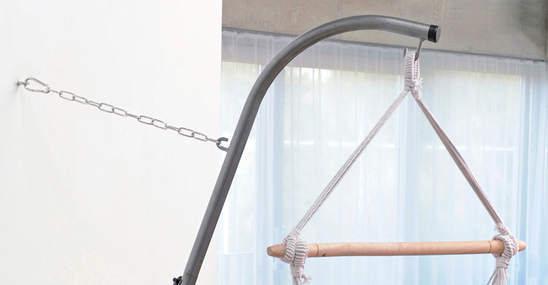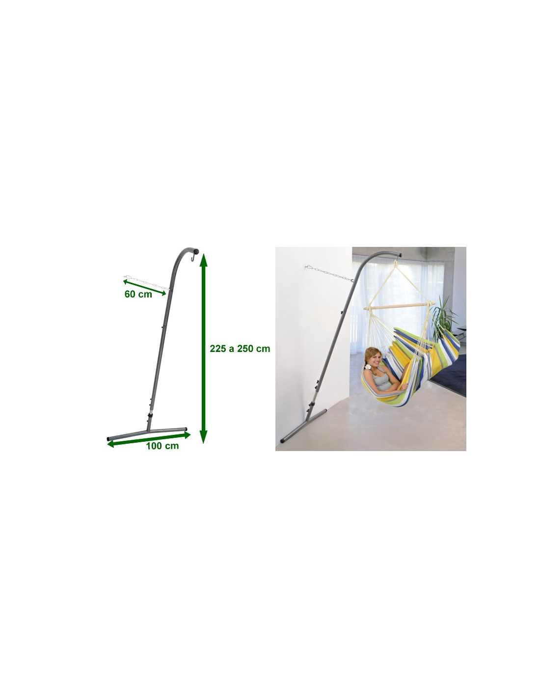 El soporte de silla hamaca Palmera R-S, con altura regulable entre 225 y 250 cm. Ocupa muy poco espacio y se puede colocar en el lugar preferido dentro de la casa , la terraza o el jardín.