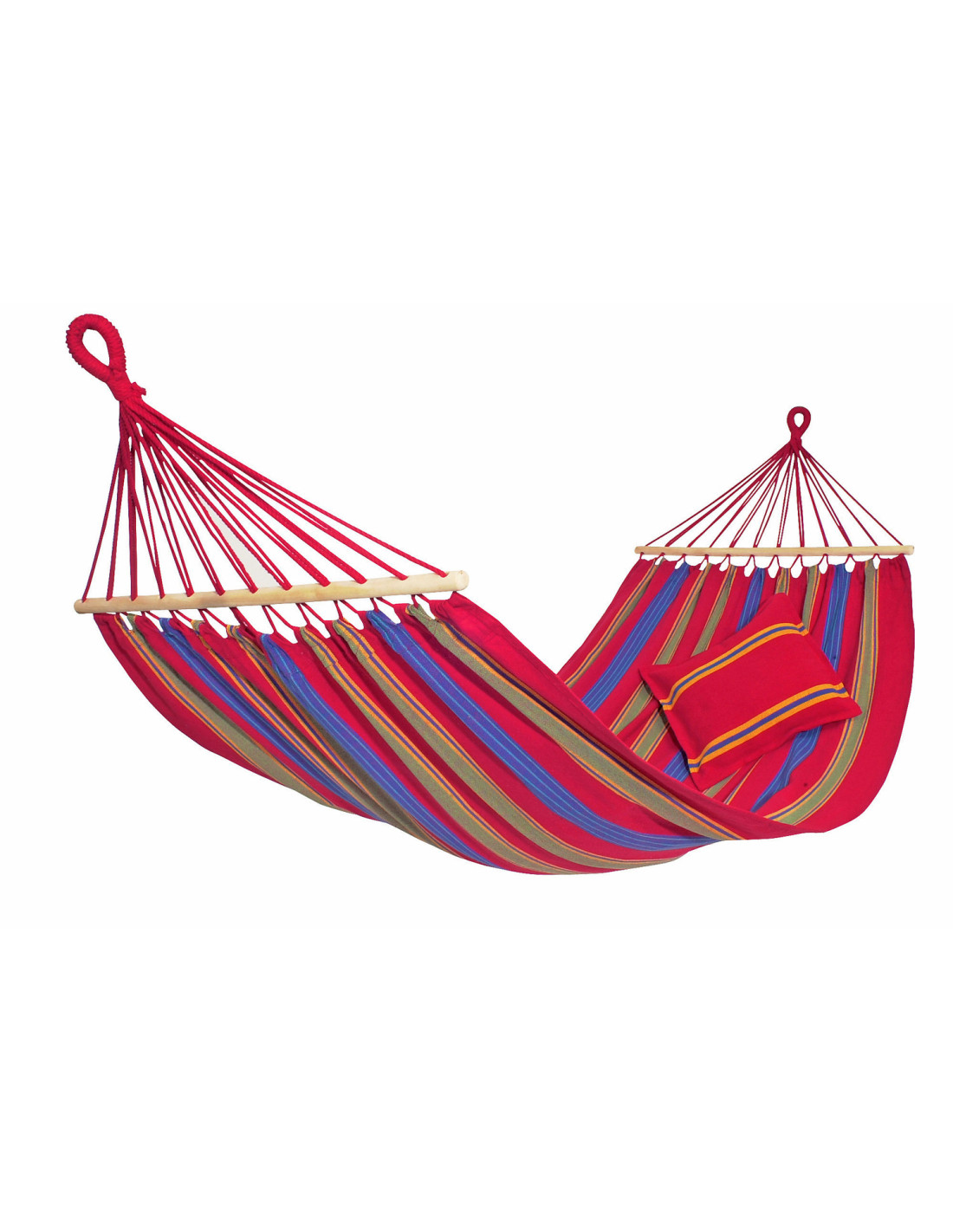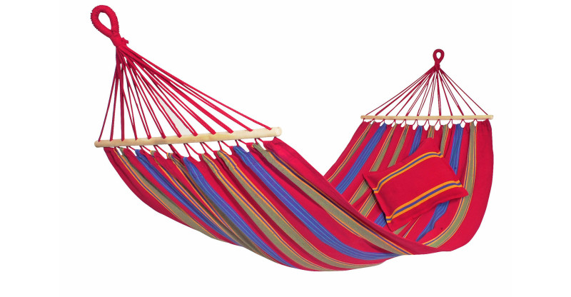 La hamacas Aruba Cayenne toma su nombre de la isla del Caribe y comparten su sabor tropical en alegres tonos rojos.