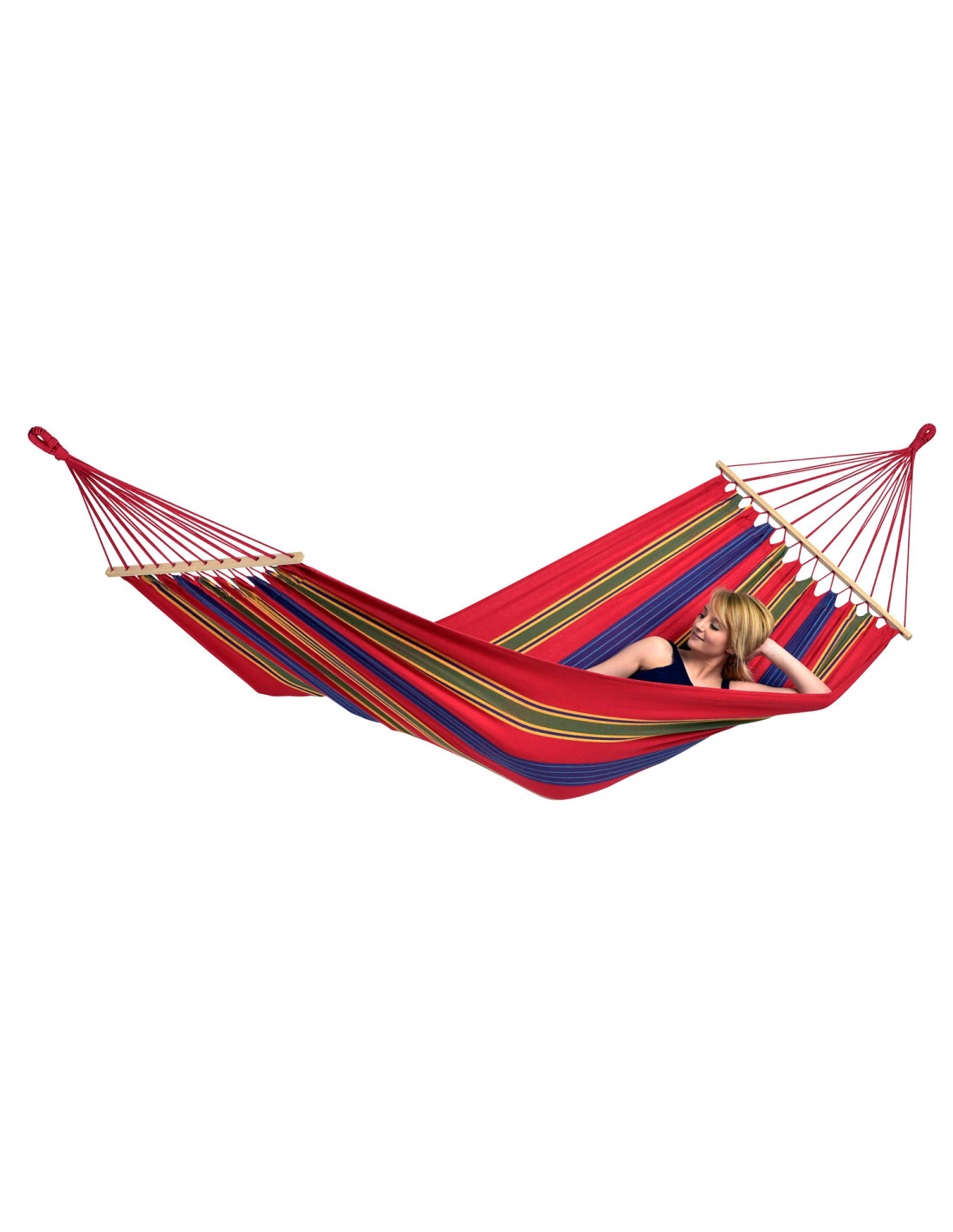 Las hamacas Aruba son realmente muy cómodas y resistentes admiten hasta 180 kg. de peso. El cuerpo central de la hamaca de 120 cm., es más ancho  que  la barra separadora de madera  de 80 cm. que lo mantiene estirado, para proporcionar una magnífica curvatura prara descansar de manera estable.
