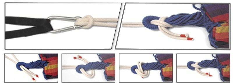 Hay que recordar que la hamaca siempre estira al subirnos, por esta razón la altura a la que colocaremos las eslingas se ha de aumentar al hacerlo la distancia entre los árboles. Mas info haciendo clic aquí. Cómo instalar la hamaca.