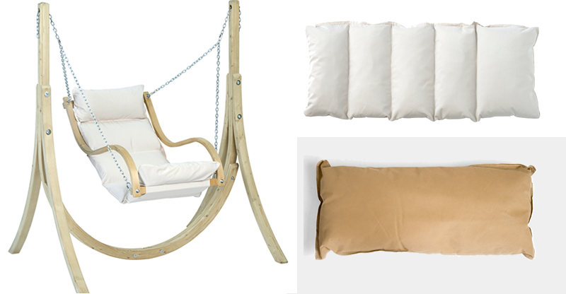 La silla hamaca Fat Chair es muy resistente a la intemperie gracias a su madera de abeto con impregnación por baño de inmersión que impide la putrefacción y el ataque de las termitas. |